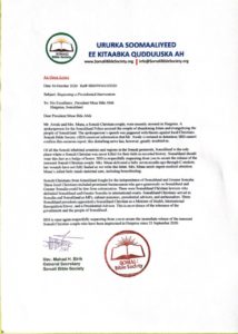 The Somali Bible Society wrote to Somaliland’s President to release Muna and Awale.