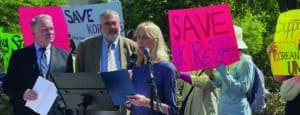 Rep. Chris Smith (on left), Chair of the Congressional-Executive Commission on China, called on China not to repatriate around 2,600 North Korean refugees who face severe abuse if returned. CFI’s Wendy Wright introduced him at a press conference outside China’s embassy in D.C.