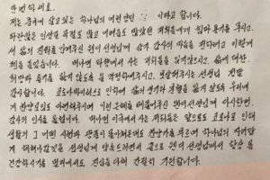 Yet, he said, “I know there are people with real faith in North Korea. They are few but real.” One of them sent a picture of a Bible verse scrawled on their hand, Jeremiah 1:19 which says: