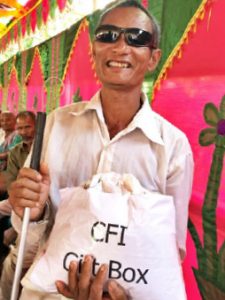 Christian Freedom International’s leader in Bangladesh seeks out people who are disabled and provides clothes, shelter, medicines, and legal aid. Each year we throw parties on “White Cane Day” to honor people who happen to be blind. They receive bags lovingly filled with food by our pastors and a special gift of a white cane – a tool that is crucial for their mobility and safety – and hear the good news of Jesus.