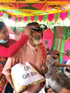 Each person receives food, glasses, a cane, an audio bible, and learns about God who sees and cares for them.