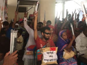 Abu’s network of Christians (who are converts to Christ and some disabled) prepares for weeks. They fill and wrap packages with rice, lentils, mosquito nets, white canes, black eye-glasses, and audio Bibles.