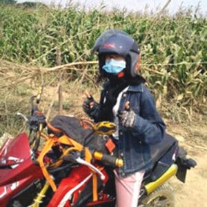 Cinderella with her mobile missions kit to share the gospel in Karen state